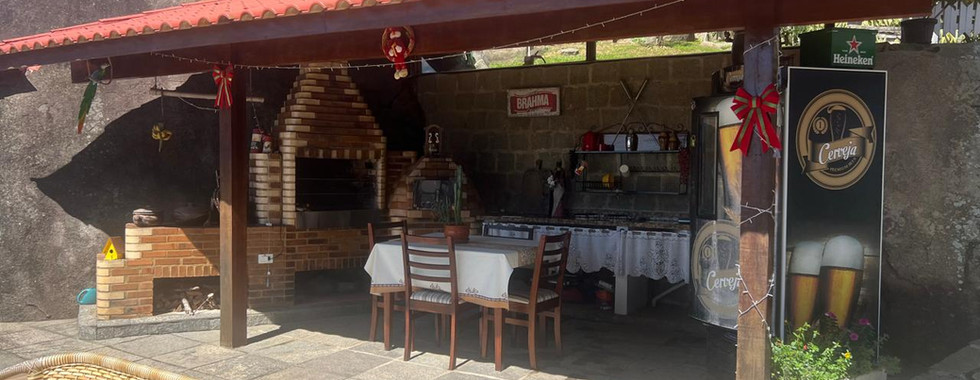 Espaço Gourmet: Churrasqueira, forno de pizza e fogão a lenha, pia de apoio ampla e 02 lavabos de suporte.