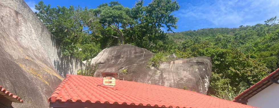 Natureza: Área bem arborizada, espaço para horta e a vista panorâmica que alcança o mar de Angra dos Reis.