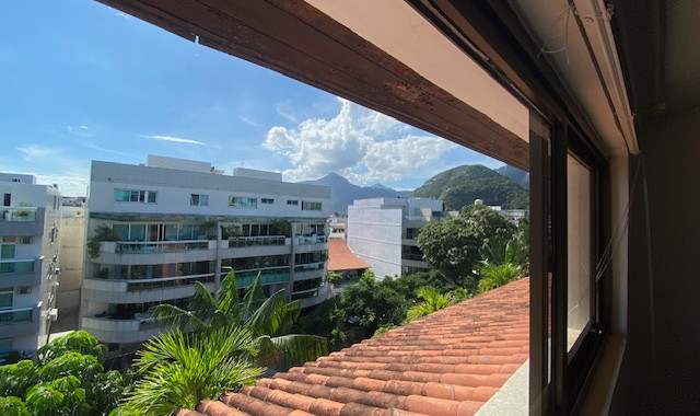 Andar inferior: Lavabo, ampla sala de estar e jantar, e de convivência, copa/ cozinha muito generosa em tamanho e muito bem equipada em armários sob medida, 02 quartos, sendo 01 suíte master. Ambos os quartos com acesso à varanda. Banheiro social e de serviço, quartos de serviço e lavanderia. Terraço com muito espaço, com muito verde e vista maravilhosa para o Morro Dois Irmãos, onde tem uma piscina, chuveirão, sauna e um banheiro de apoio.